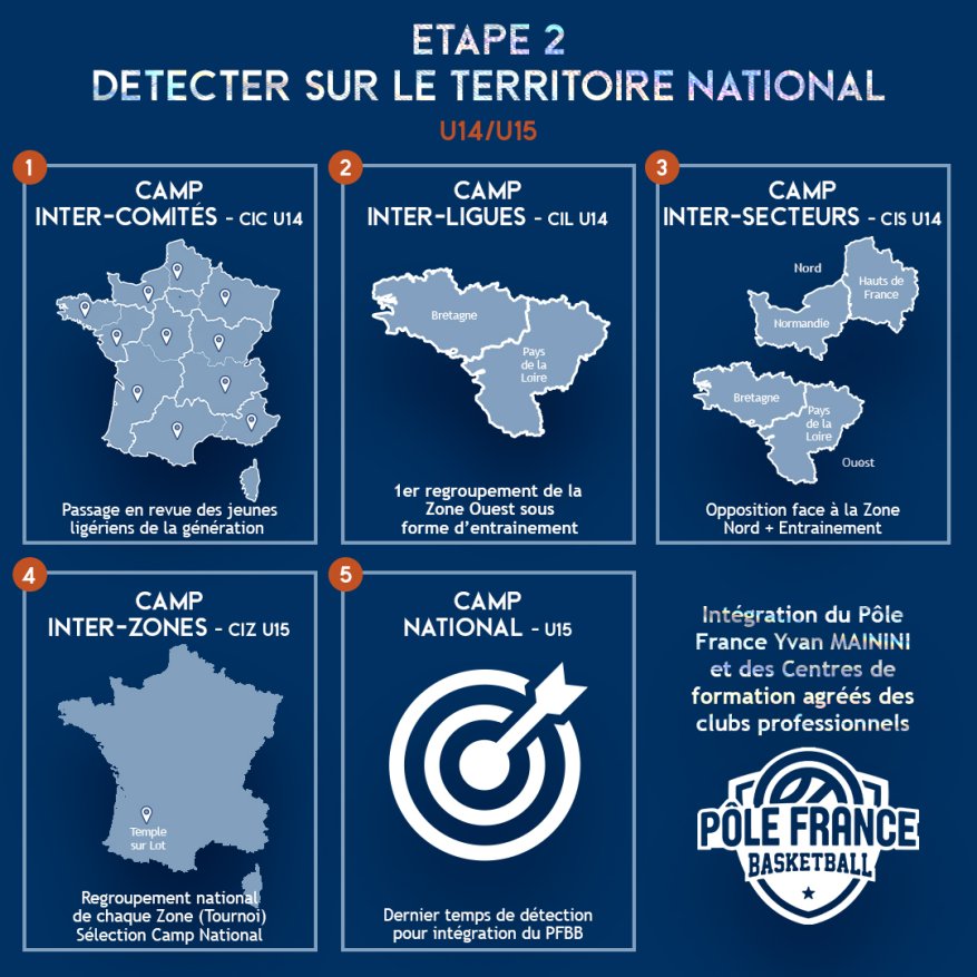 - Etape 2 : Détection et sélection des jeunes pour le Pôle France Yvan MAININI et les structures du PPF et les Centre De Formation agréés des Clubs Professionnels, parmi les catégories U13, U14 et U15